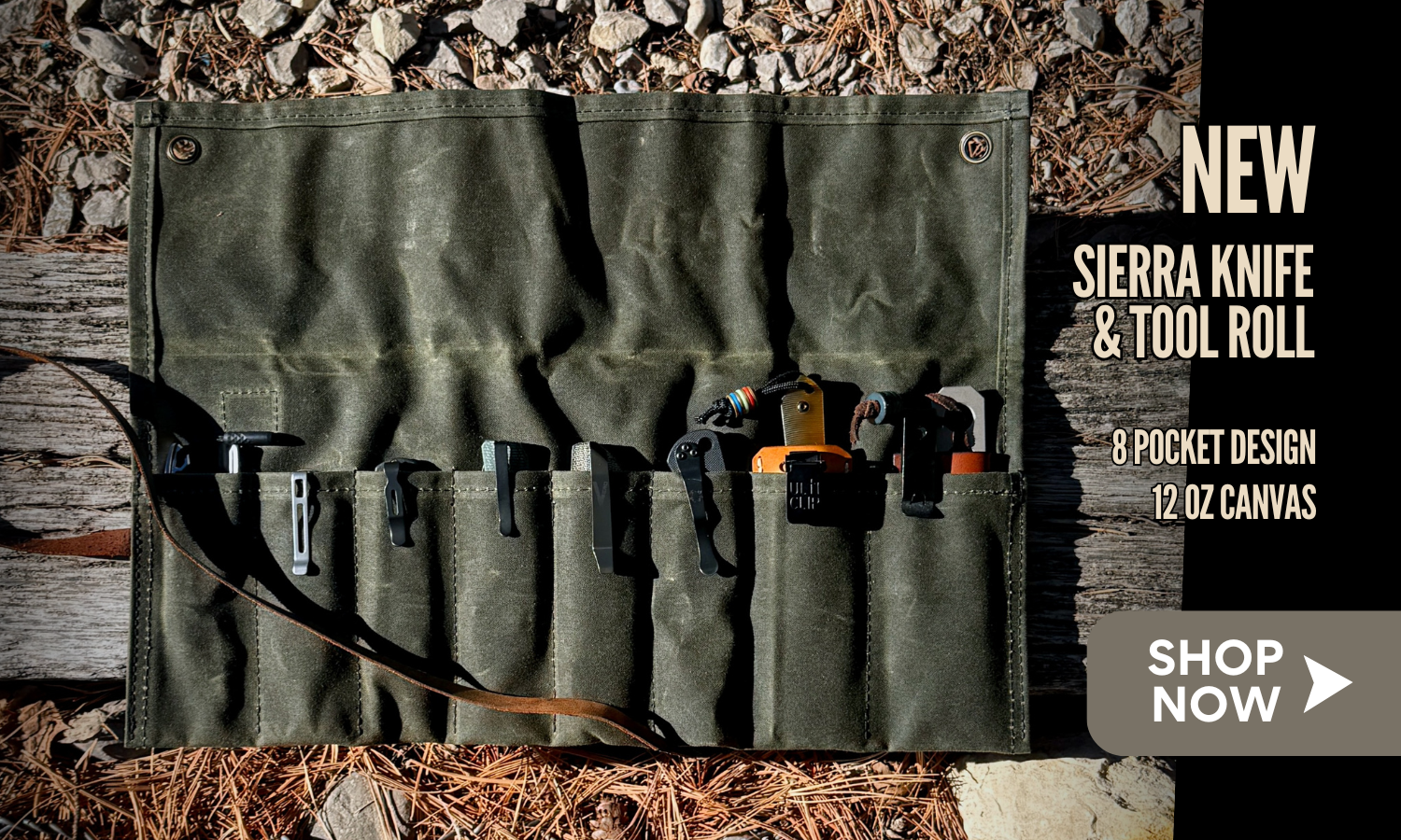 SIERRA KNIFE & TOOL ROLL (OLIVE WAXED CANVAS)