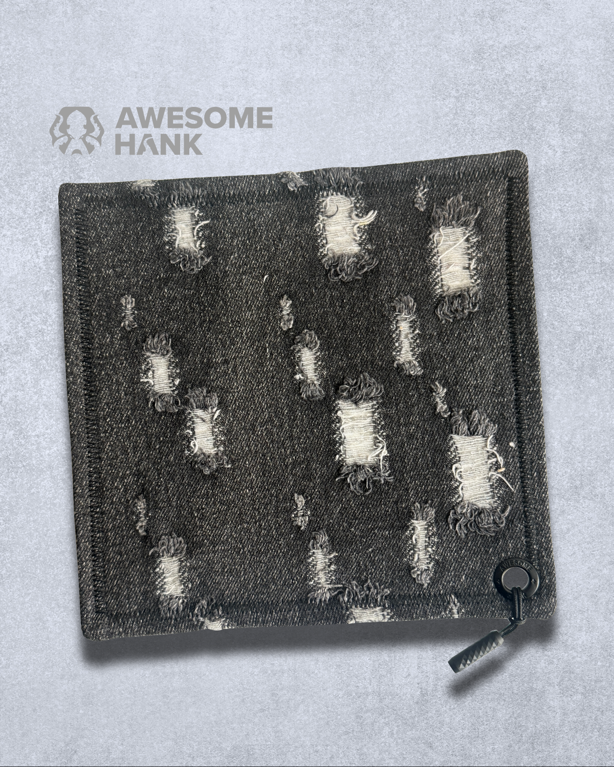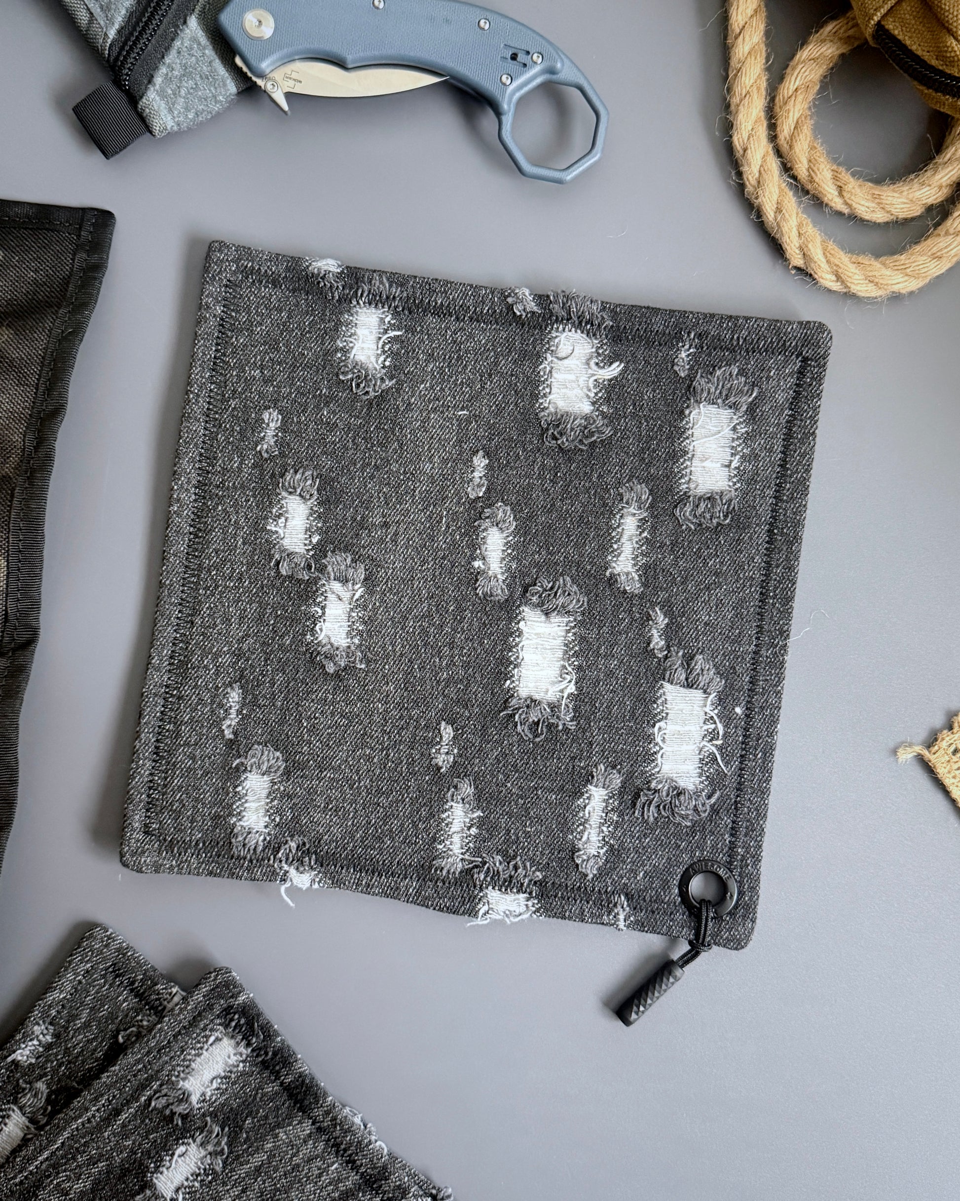 MODERN EVERYDAY CARRY XL HANDKERCHIEF FEATURING A DISTRESSED BLACK DENIM FABRIC. LENS GRADE MICROFIBER BACKING TO KEEP YOUR DAILY ESSENTIALS SMUDGE-FREE.