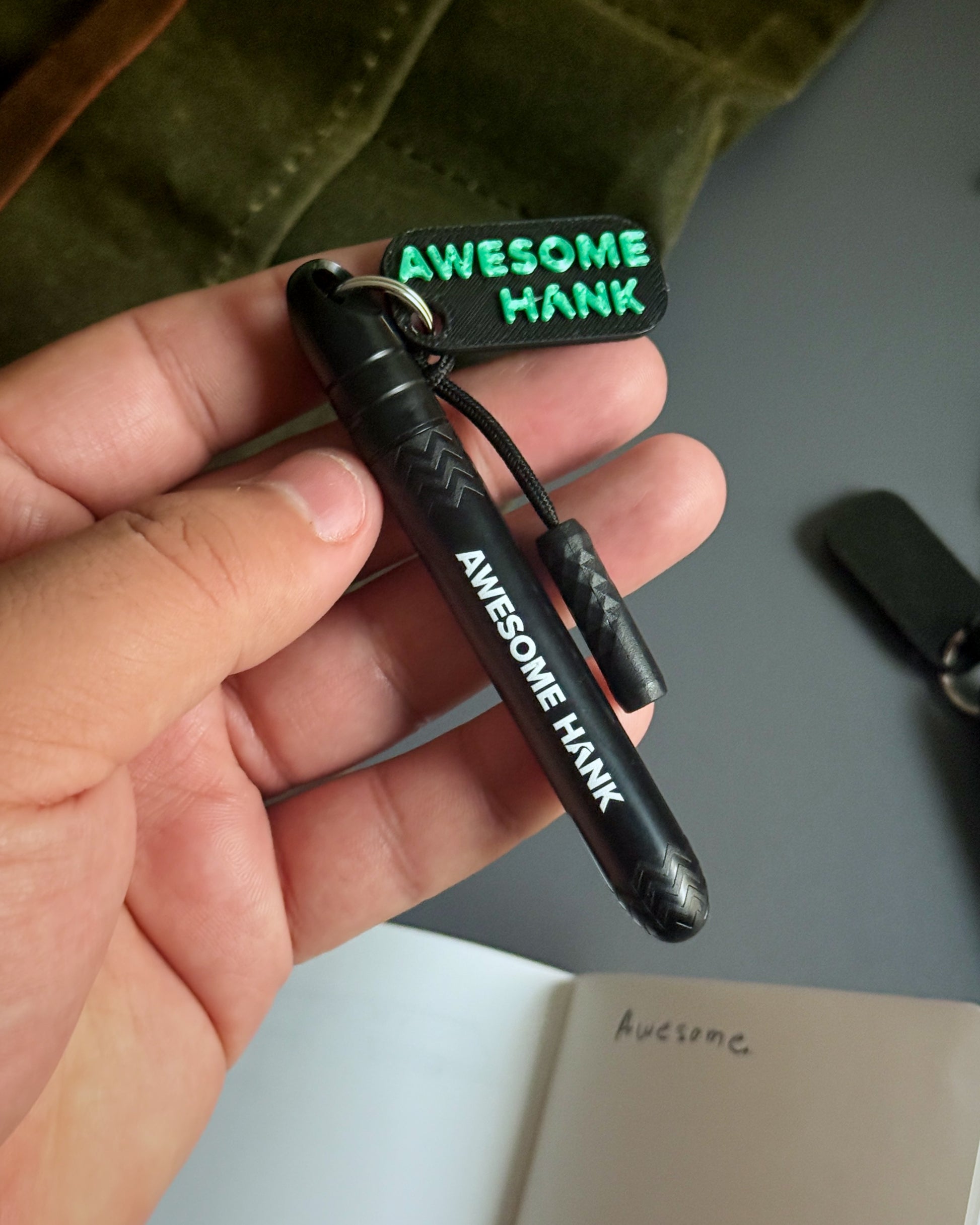 A Keychain Pokka Pen that includes a classic Pokka Pen paired with a matching plastic Dock keychain attachment, so you’ll always have a pen right where you need it. Clip it to your keys, bag, or gear and go. Special edition includes the Awesome Hank Branding, Awesome Hank hanger and our Zipper Pull Coal Nunchuck.