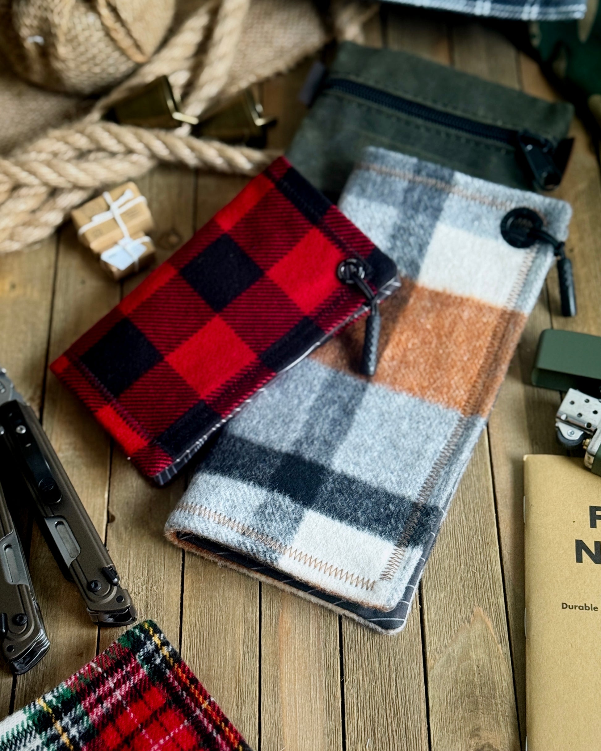 MODERN EVERYDAY CARRY FLANNEL HANDKERCHIEF FEATURING A BLACK AND RED PLAID PATTERN. LENS GRADE MICROFIBER BACKING TO KEEP YOUR DAILY ESSENTIALS SMUDGE-FREE.