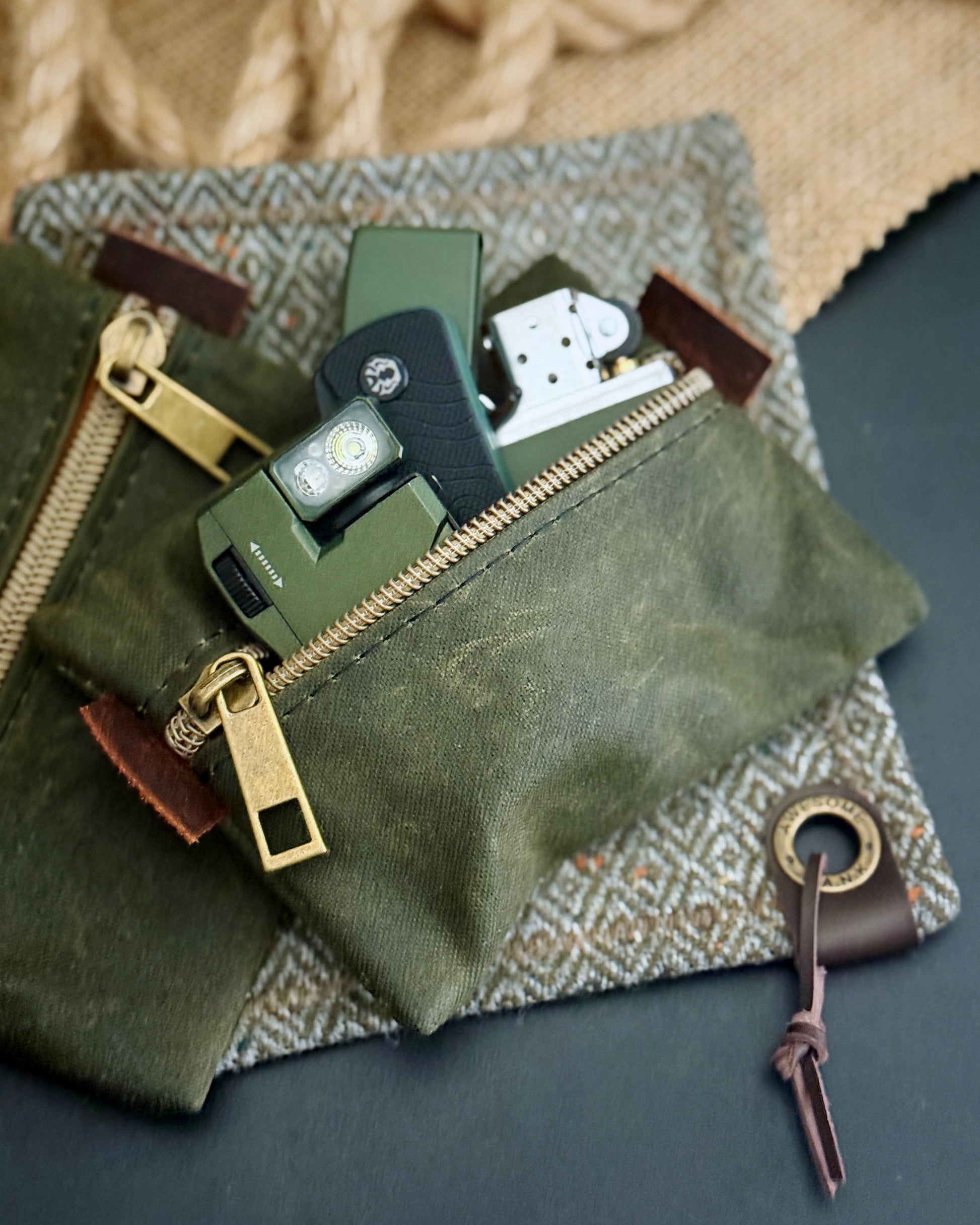 THIS ORDER COMES WITH ONE (1) WAXED CANVAS OLIVE ALPINE MINI SCOUT POUCH *EXTRA ITEMS NOT INCLUDED.
