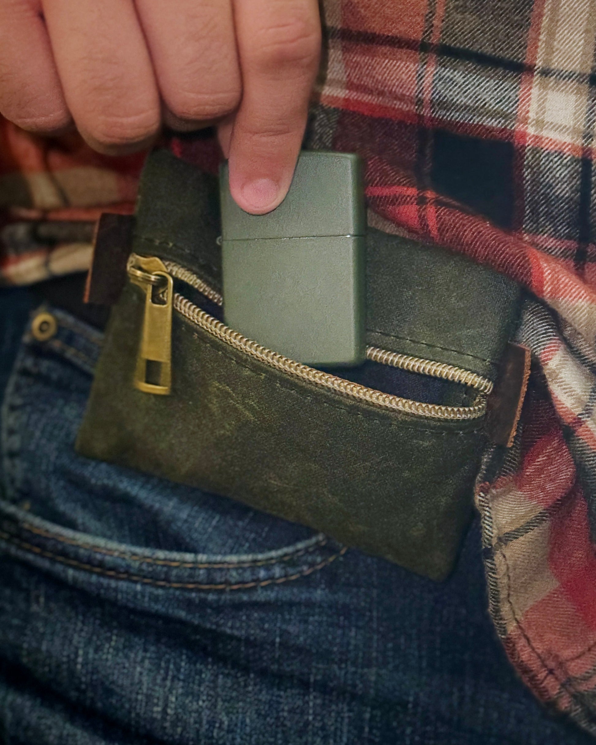 INCREASE YOUR CARRY CAPACITY WITH THE ALPINE MINI SCOUT POUCH. A RUGGED, WAXED CANVAS POUCH THAT CAN EASILY BE ATTACHED TO ANY BELT UP TO 2" WIDE. IDEAL TO CARRY YOUR CARDS, CASH, KEYS, LIGHTER, EDC GEAR AND MORE. CREATE YOUR OWN MINI POUCH - FIRST AID KIT / SURVIVAL KIT / WALLET SETUP. THE POUCH FEATURES A LOW-PROFILE FLAT DESIGN, WIDE MOUTH ZIPPER OPENING, LEATHER ACCENTS, A ROBUST 12oz WAXED CANVAS, AND A SOFT FABRIC INTERIOR LINER.