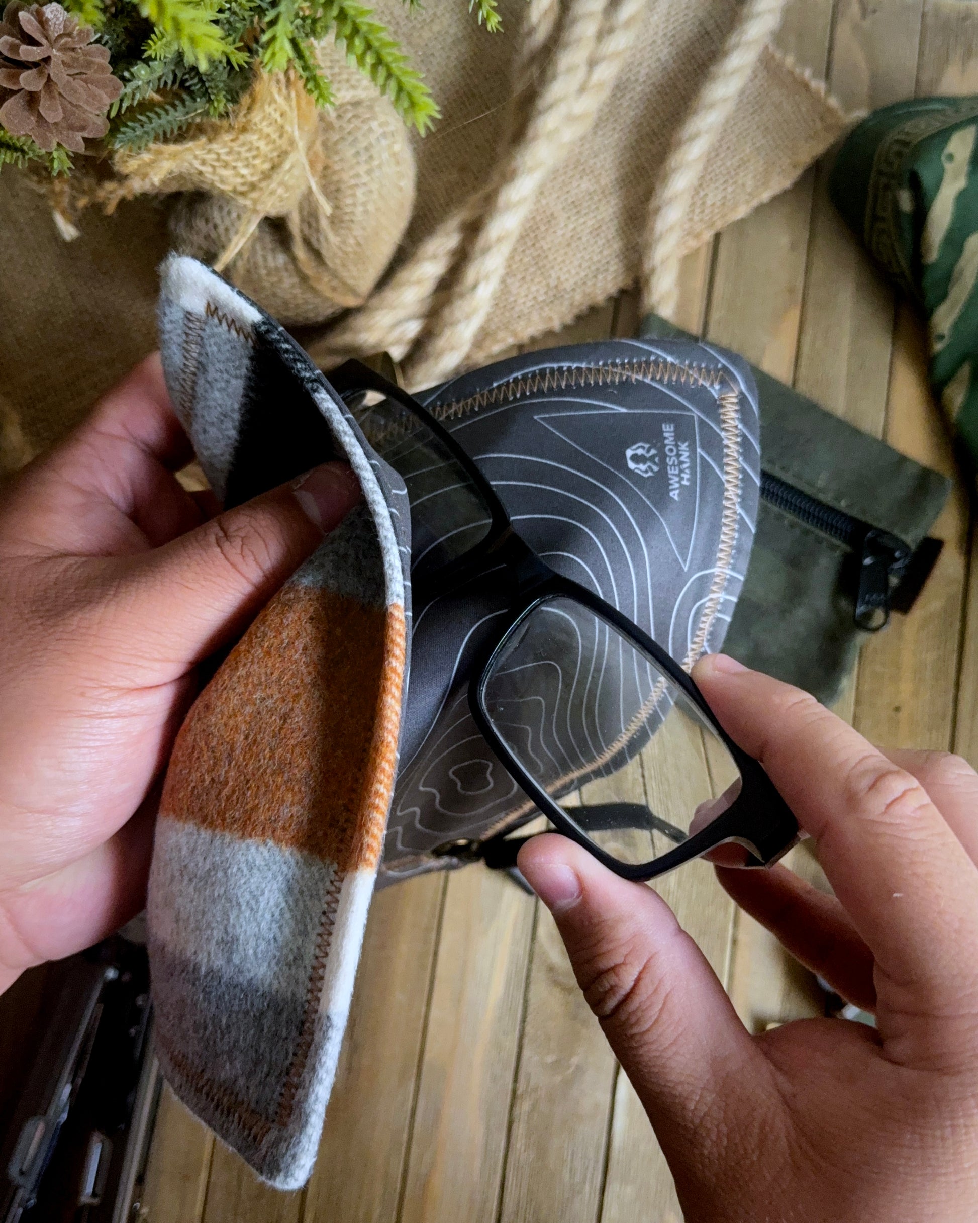 AWESOME HANK IS THE MODERN HANDKERCHIEF THAT IS DESIGNED FOR EASY CARRY AND WILL KEEP YOUR GLASSES, PHONE SCREEN, WATCH, CAMERA AND OTHER ESSENTIALS CLEAN.